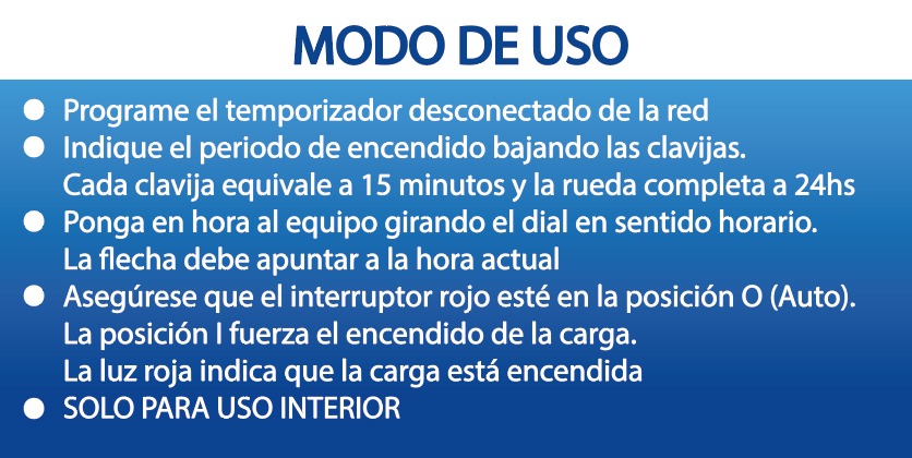 Temporizador diario programable Programación diaria Intervalo cada 15 min Carga máx: 10A Enchufable